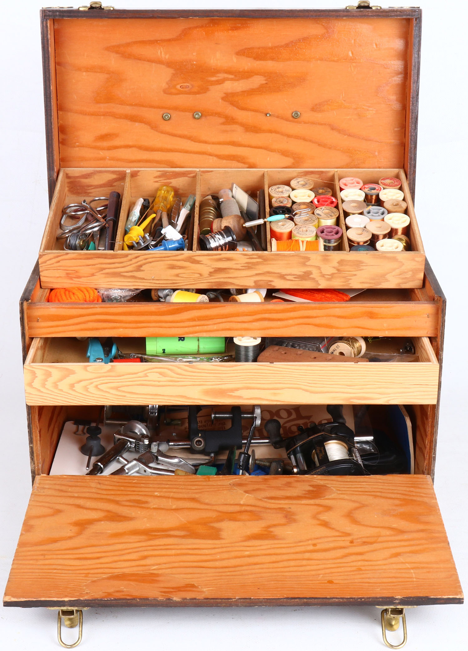 | Fly Tying wooden box by Semco, full of thread, tools cutters, r...