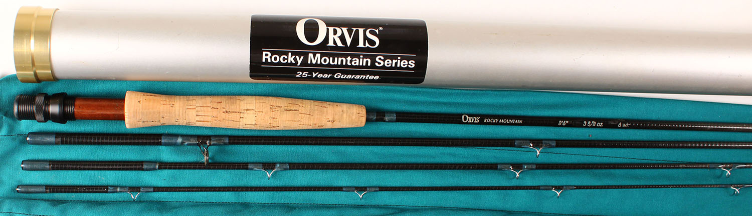 Orvis Rocky Mountain Fly Rod, 8'6'', 6wt, 3 5/8 oz, 4/1, appears to be only lightly fishing if at all, has original cloth bag & tube. Grade: Excellent ++ - Value: 50 to 400