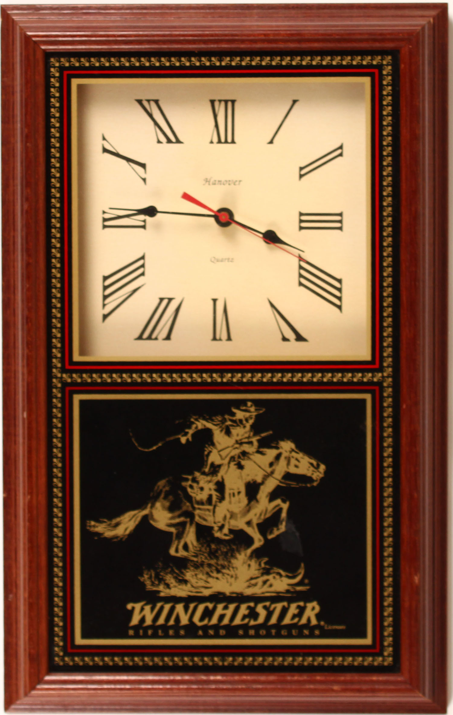 Winchester Wall Clock, Quartz, battery operated, near mint condition, 11 1/2'' x 18''. Grade: Excellent ++ - Value: 100 to 300
