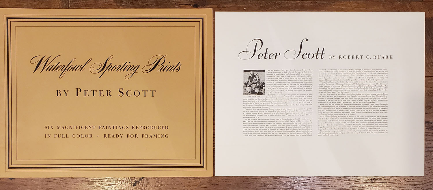 RARE, Set of 6 1953 Peter Scott full color prints, Titled ''Waterfowl Sporting Prints'' in original portfolio sleave, with artist & print description sheets. Frame quality. Originally offered by Field & Stream. Grade: Excellent++ - Value: 2 to 100