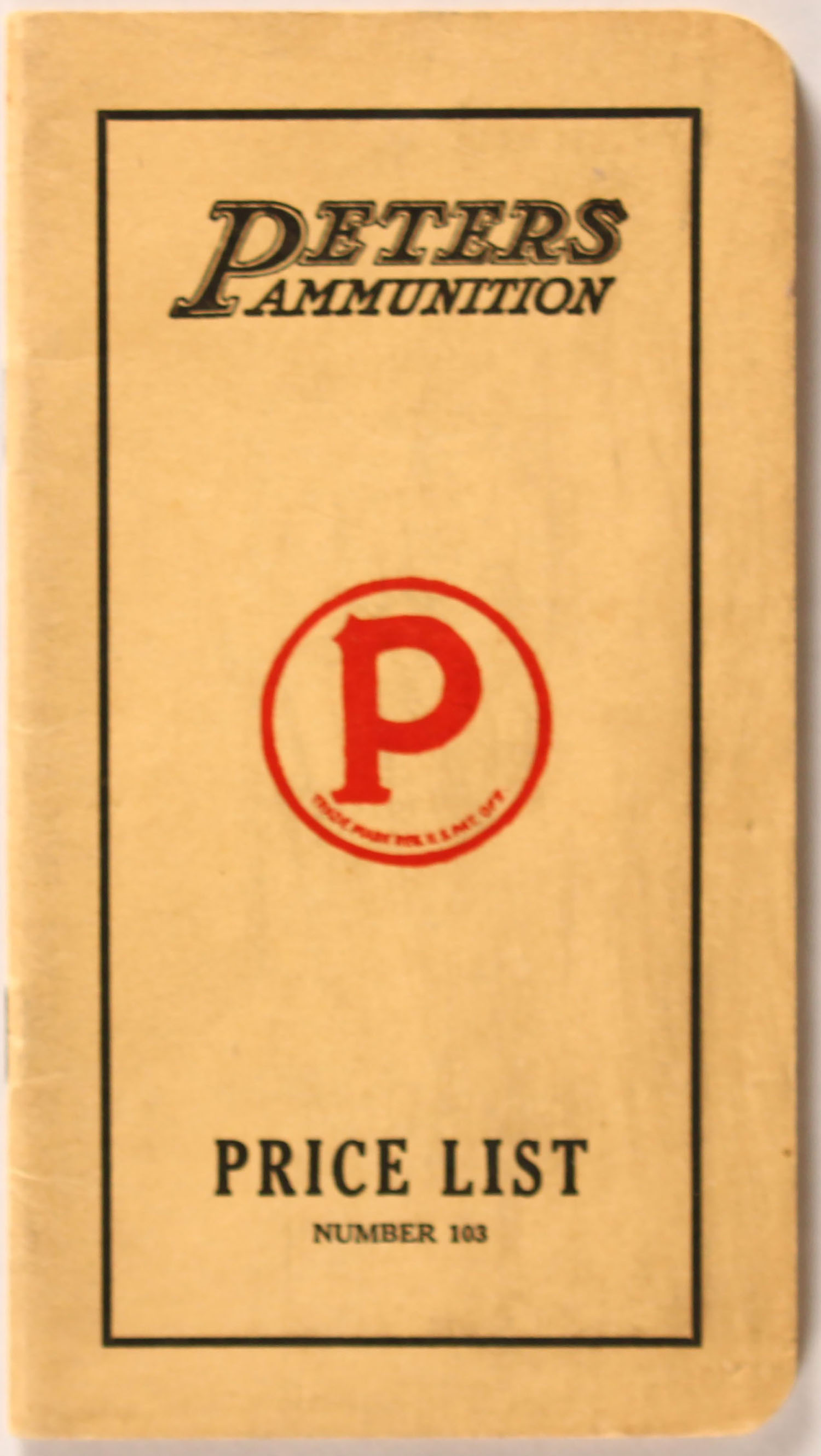 No 103 Peters Ammuntion Pocket Price List, 48 pages, 3 1/2'' x 6 1/2''. Grade: Excellent - Value: 2 to 50