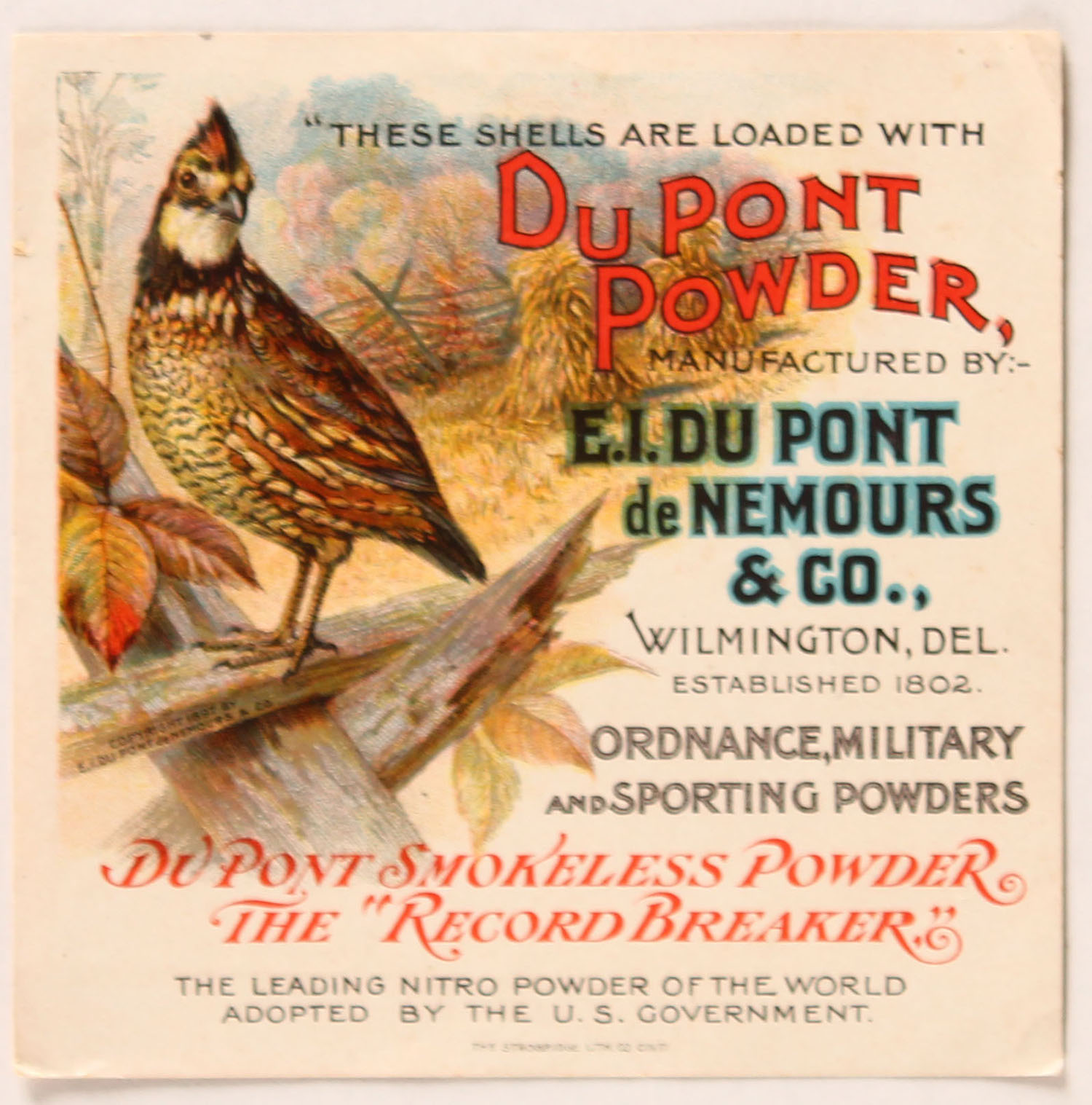 Dupont Powders Shotshell box insert, back is blank. Grade: Excellent + - Value: 40 to 120