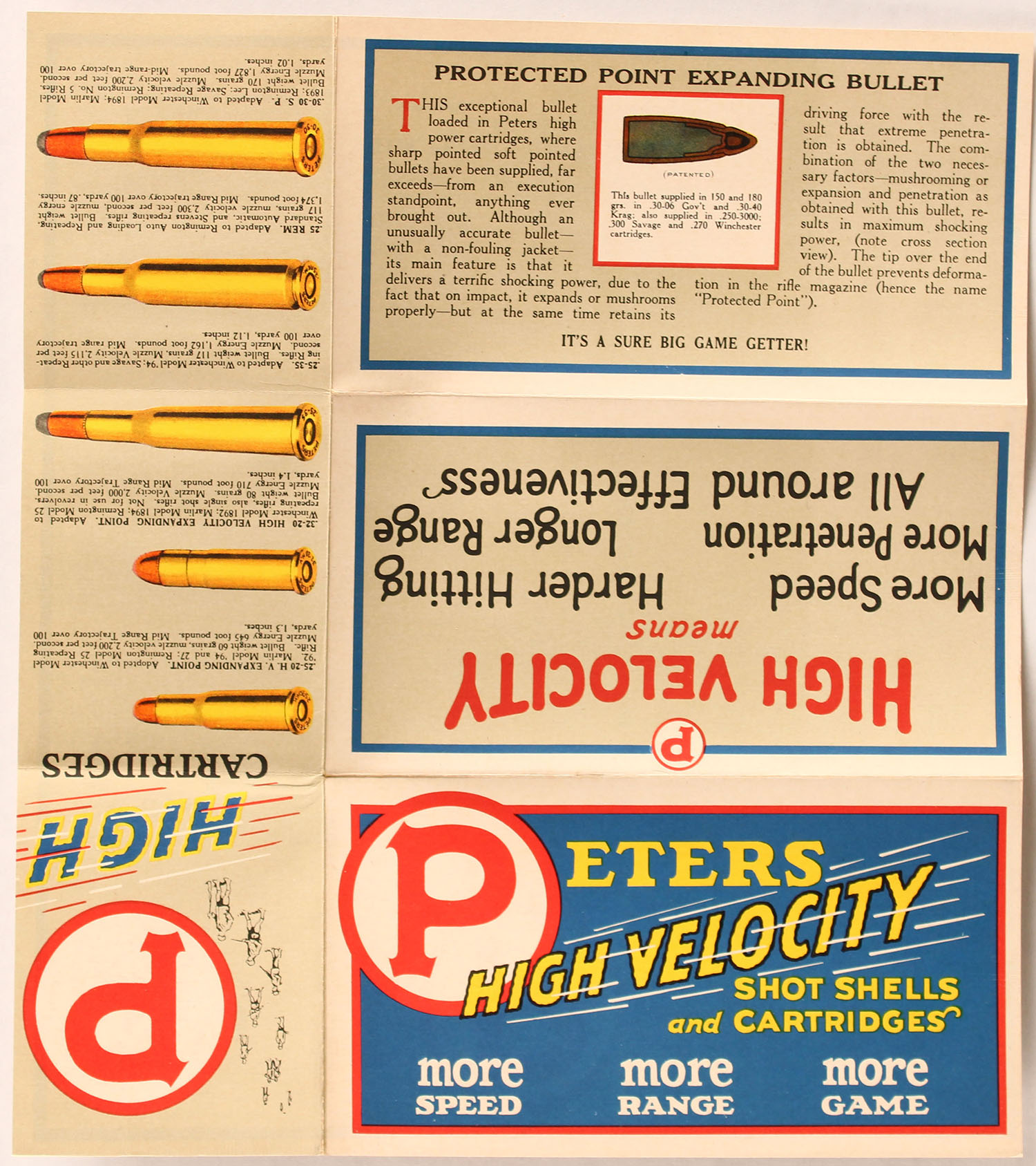 Peters HIGH VELOCITY Brochure pictures blue wing teal 2pc shot shell box inside, inside has advertisements as well. Grade: MINT - Value: 20 to 60