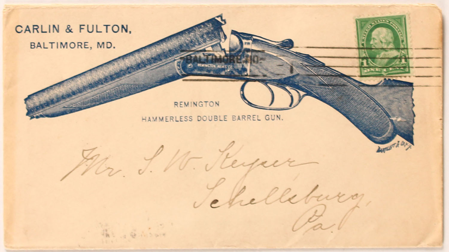 Remington Hammerless Double Barrel Gun Envelope, large image of shotgun gun, dated 1901, back has image of rifle with lots of advertisements. Grade: Very Good ++ - Value: 10 to 50
