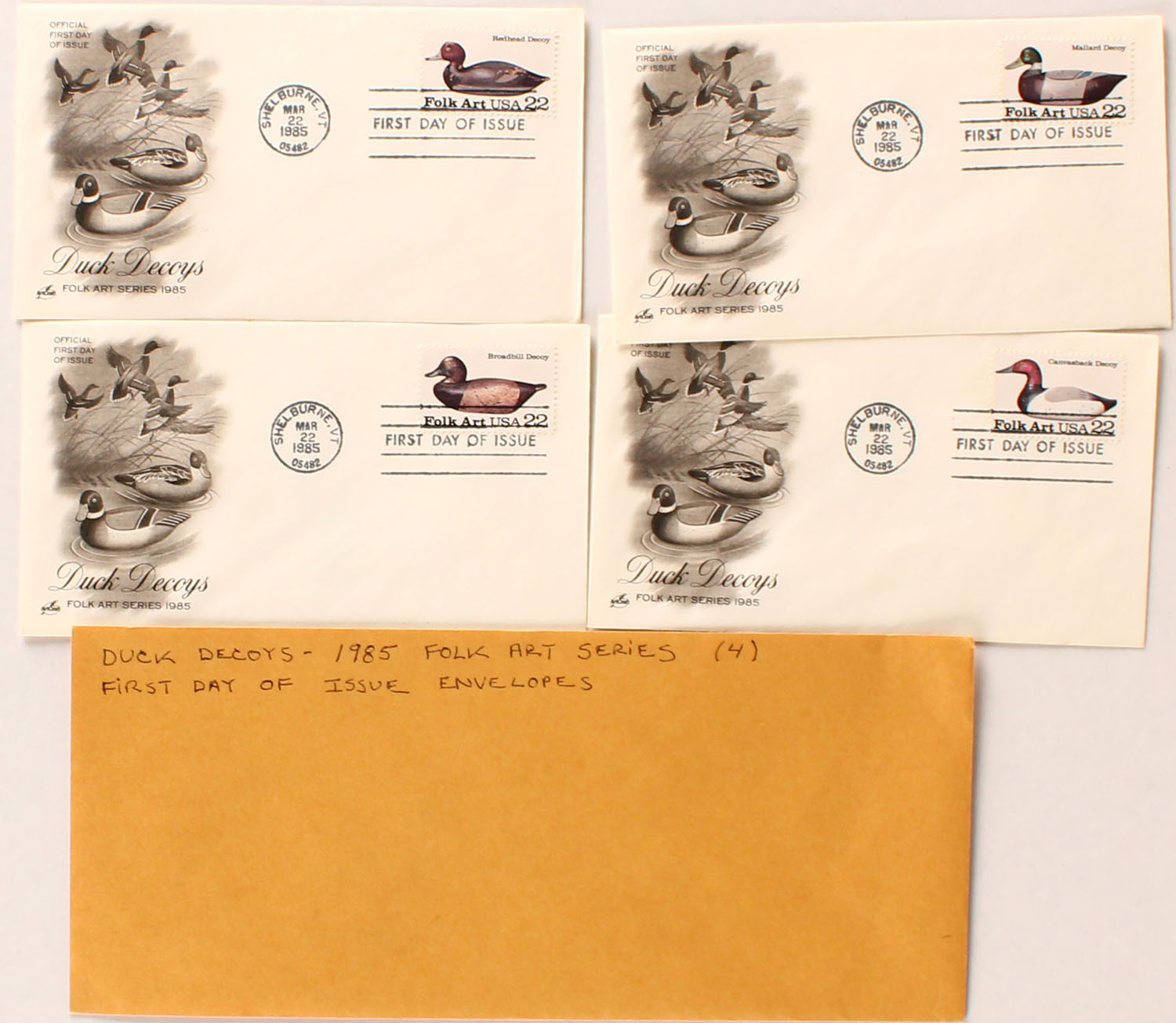 Lot of 4 1985 Folk Ars Series First day of Issue Envelopes. Grade: Excellent ++ - Value: 6 to 40