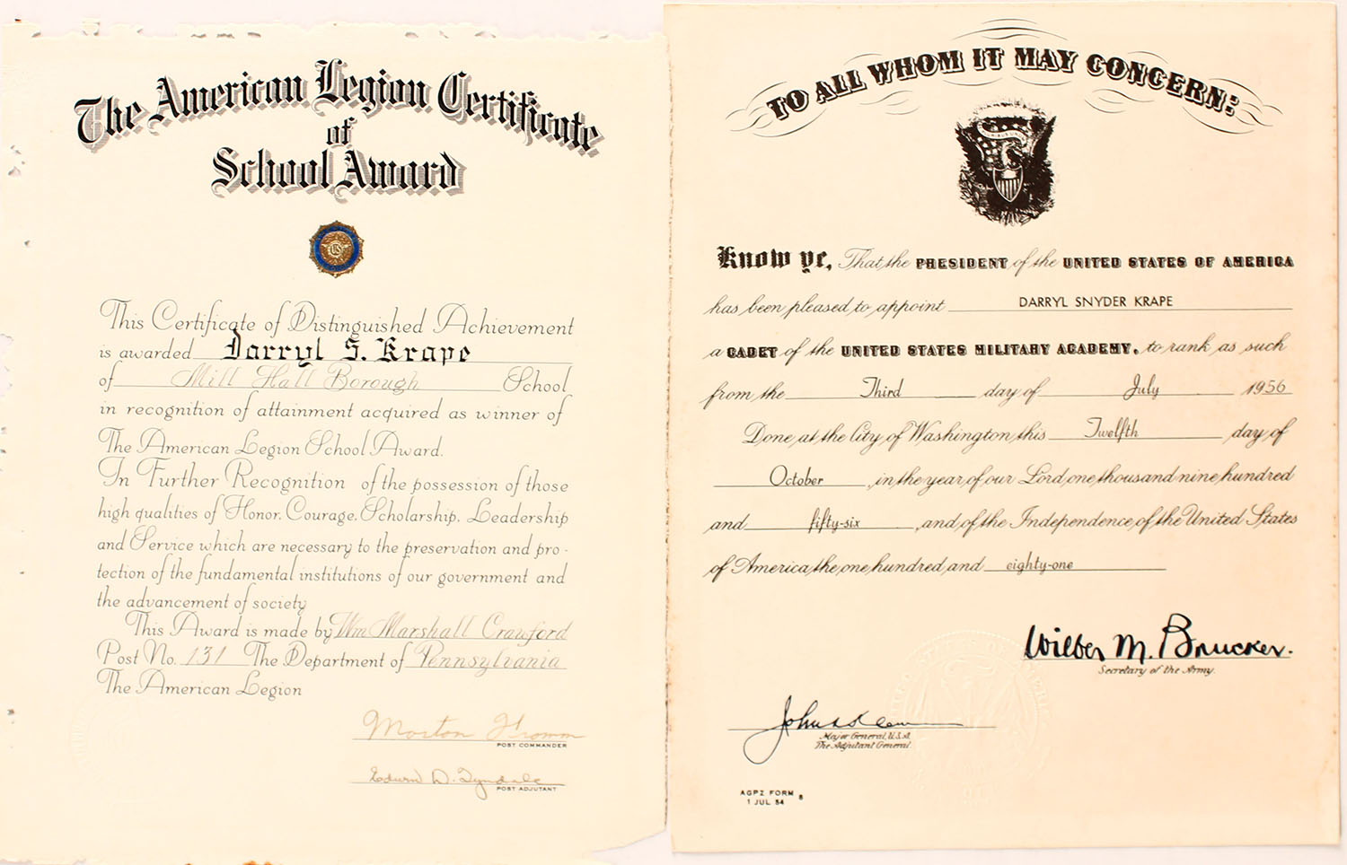Lot of 2 US Military academy awards, circa 1954. Grade: Excellent - Value: 2 to 40