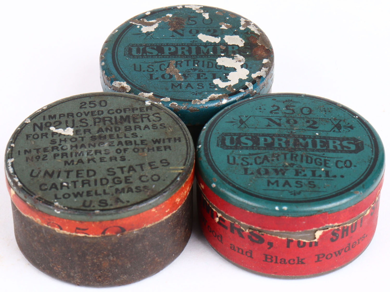 Lot of 3 US primers tins, all partial, some scuffing. Grade: Very Good - Value: 10 to 50