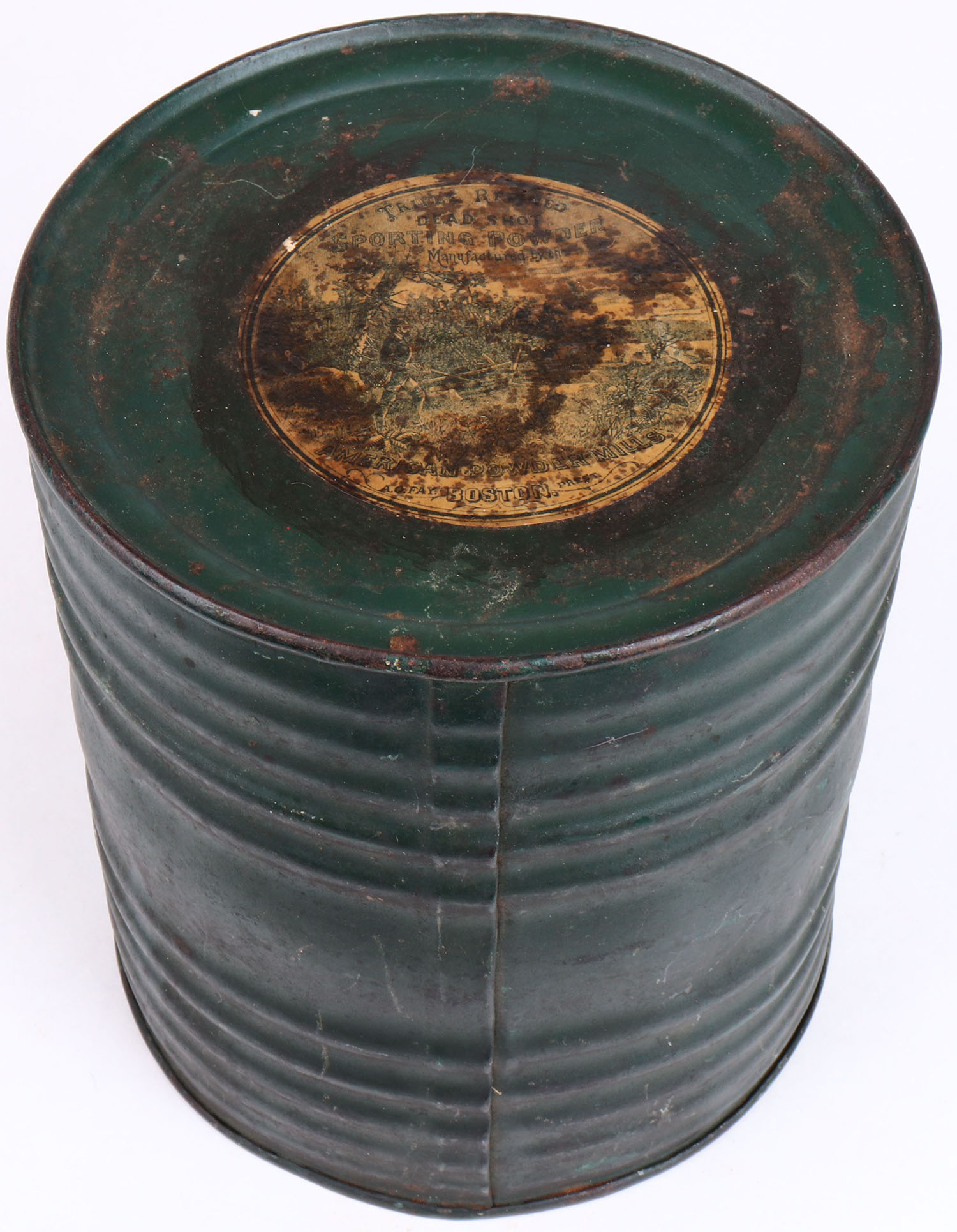 Large American Powder Mills Sporting Powder tin, circa-1883-1900, has age soling to labels, tin has some rust. Grade: Very Good ++ - Value: 10 to 60