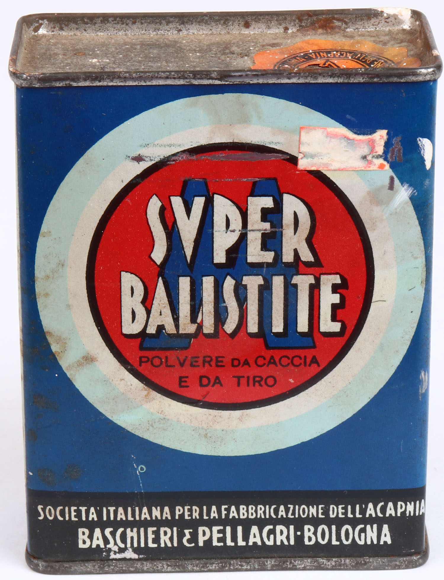 Foreign gunpowder tin, Full, has age soiling. Grade: Very Good ++ - Value: 6 to 60