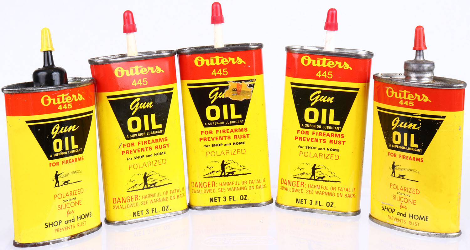 Large lot of Outers oil tins, all partial. Grade: Very Good ++ - Value: 10 to 100
