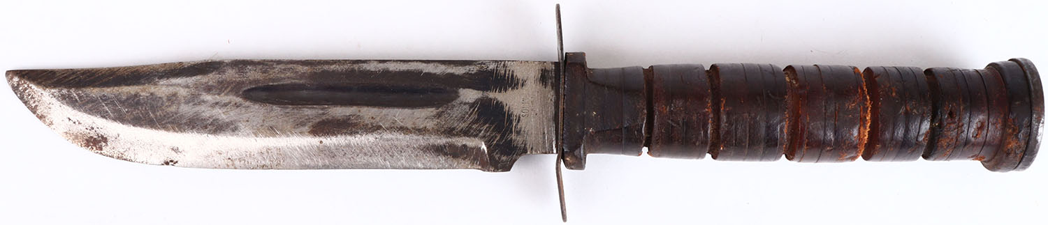Combat knife, hard to read, has rust and age soiling, 6 1/2: blade. Grade: Good ++ - Value: 4 to 40