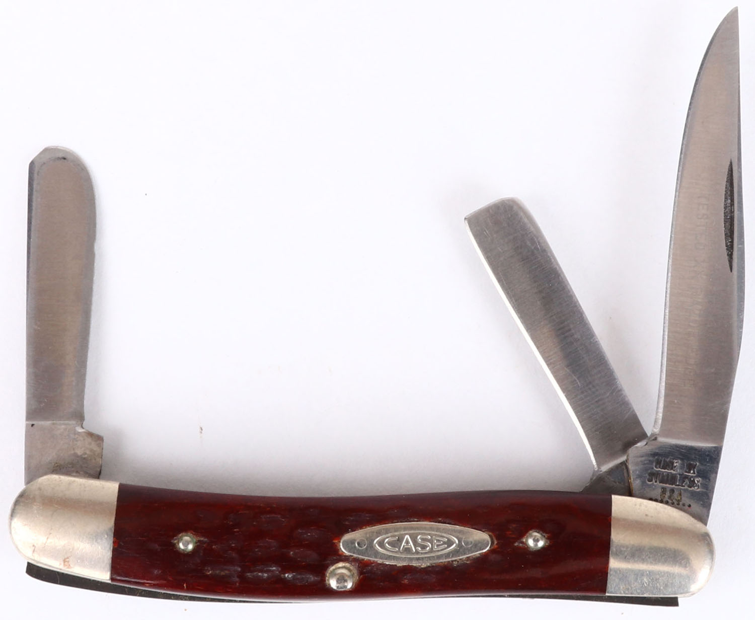 Case folding knife, 3 blades, 2 1/2'' longest blade, all bright and clean. Grade: Very Good ++ - Value: 16 to 60