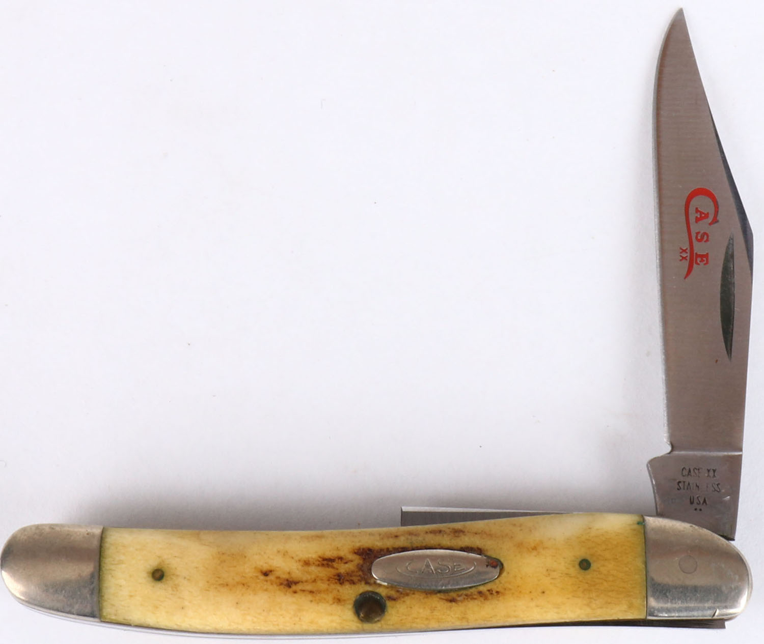 Case folding knife, 2 blades, 2'' blade, other blade is broken, age soiling to blade. Grade: Good - Value: 6 to 40