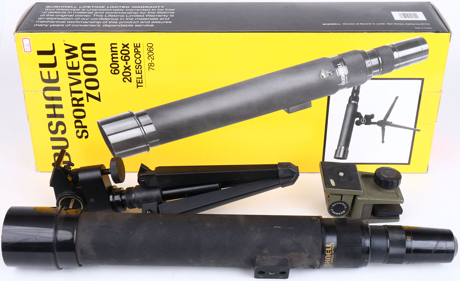 Bushnell Sportview zoom 60mm, 20x-60x telescope, in orignal box. Grade: Excellent ++ - Value: 40 to 100
