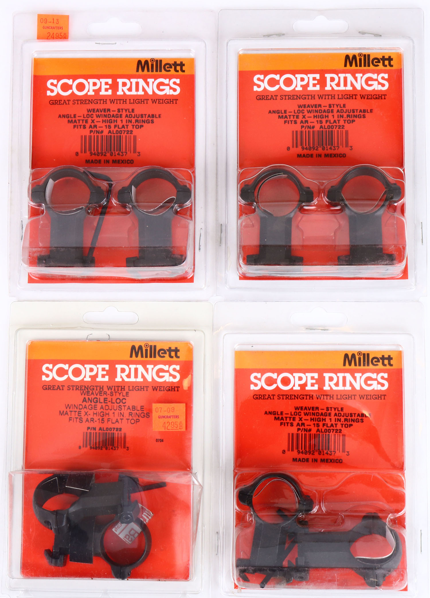 Large lot of Millet scope rings in original packaging. Grade: Excellent - Value: 2 to 40