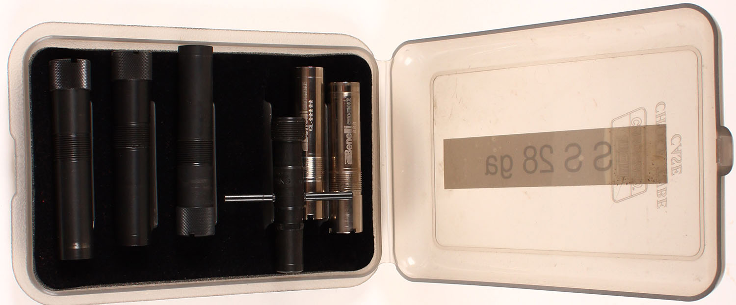 Lot of 5 28 ga Choke tubes, Benelli and Briley brand, IC,CL, M (2) and F choke tubes and Berretta choke tube tool. Grade: Excellent ++ - Value: 10 to 50