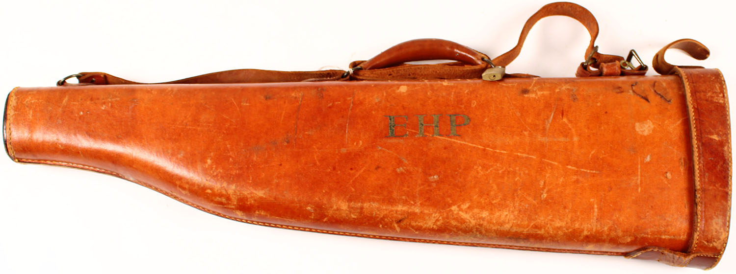 Leather shotgun case, 29 1/2'' OAL, marked ''SSD 28'', case has scuffing and wear, EHP marked on side of case. Grade: Very Good - Value: 20 to 80