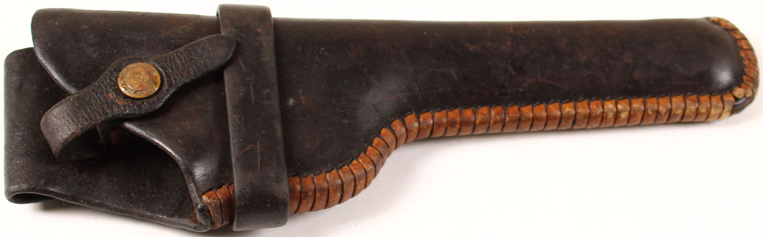 George Lawrence Leather pistol holster, 25L 22A, fits Colt woodsman, has age soiling. Grade: Very good - Value: 10 to 60