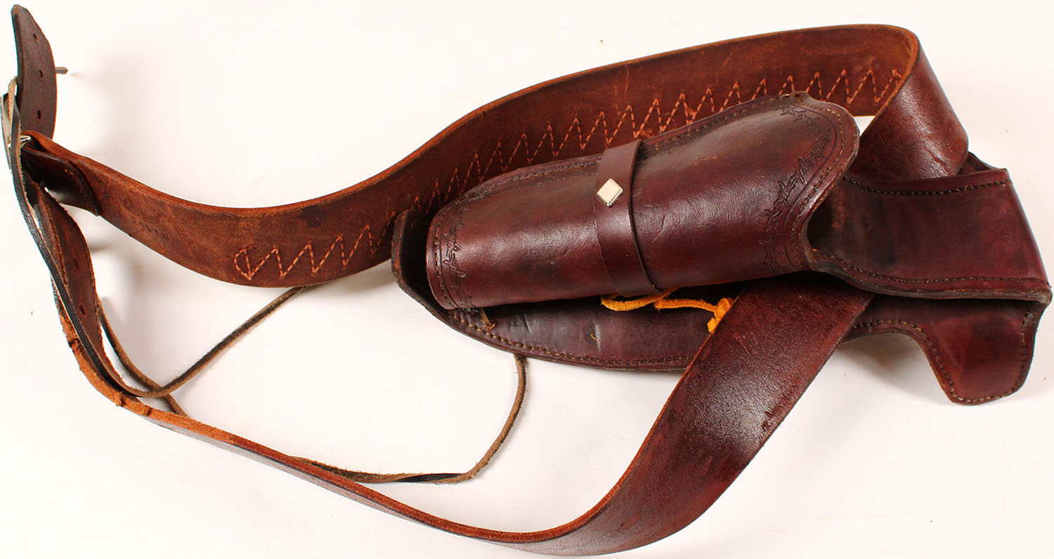 Leather Hunter belt and revolver holster, has age soiling. Grade: Very good ++ - Value: 10 to 60