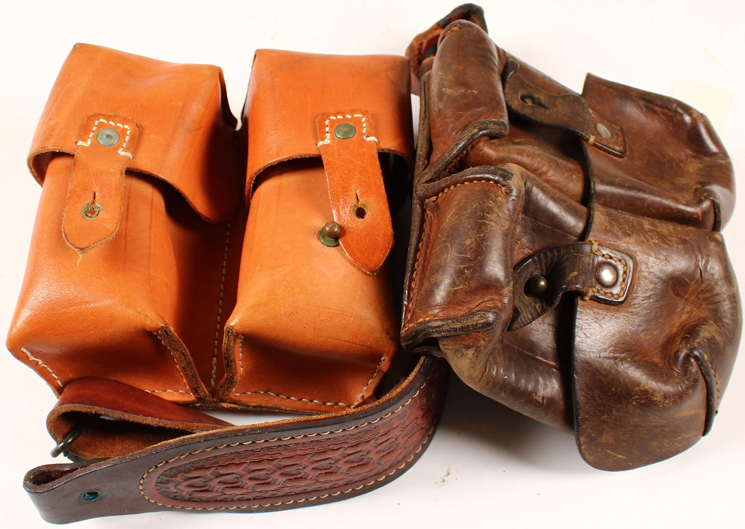 Lot of 3 leather items, 2 poches and a sling. Grade: Very Good ++ - Value: 6 to 60