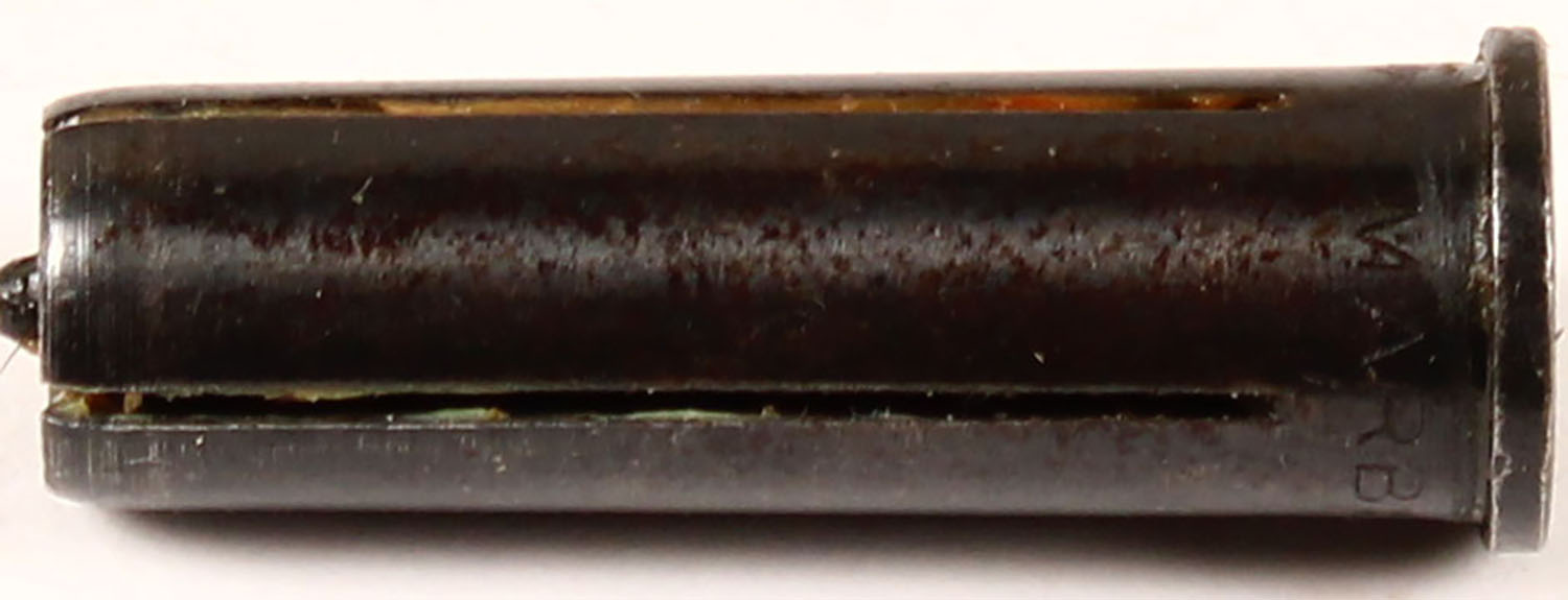 Marbles Auxiliary cart., No. 154, well marked, use in .303 Sav. with .32 Colt Auto. Grade: Excellent - Value: 16 to 50