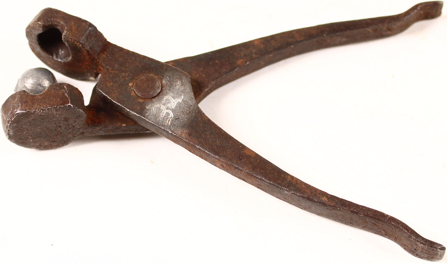 Bullet mould, single cavity round ball mould, 32 carved into tool, lots of rust clean. Grade: Good ++ - Value: 10 to 50