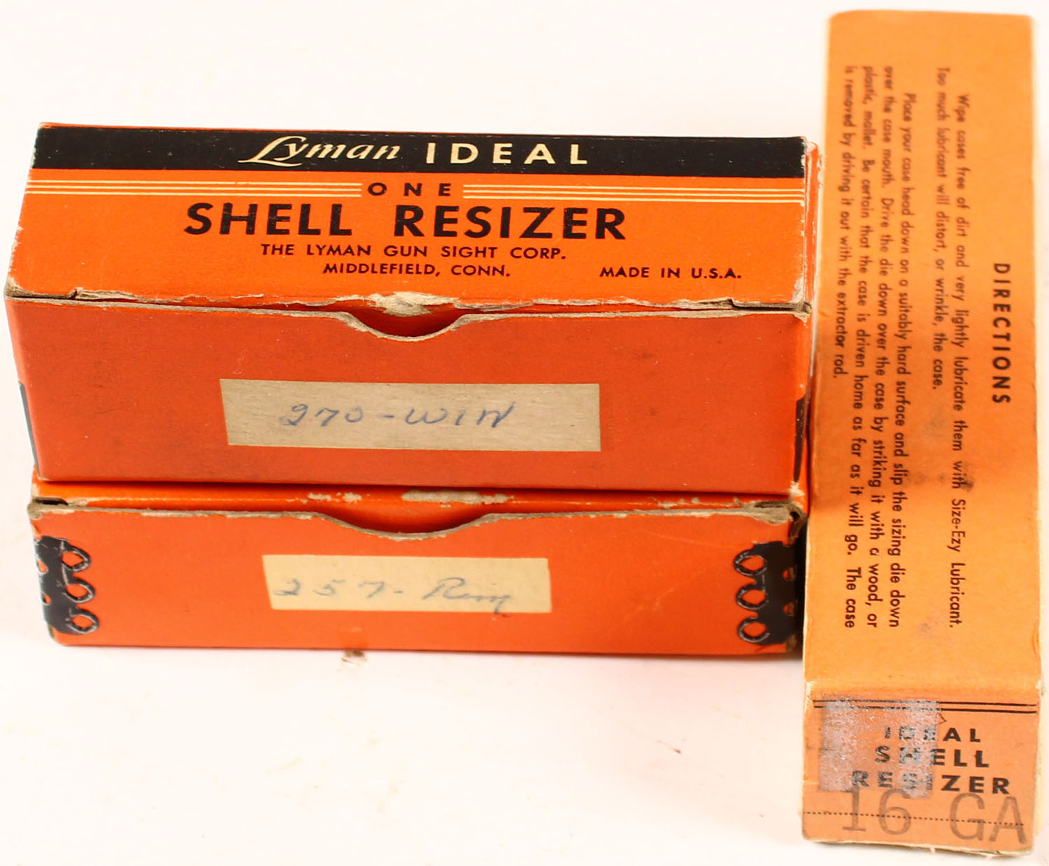Lot of 3 Lyman shell resizers, 16 ga., .257 Rem and .270 Win. cal. Grade: Excellent - Value: 6 to 60