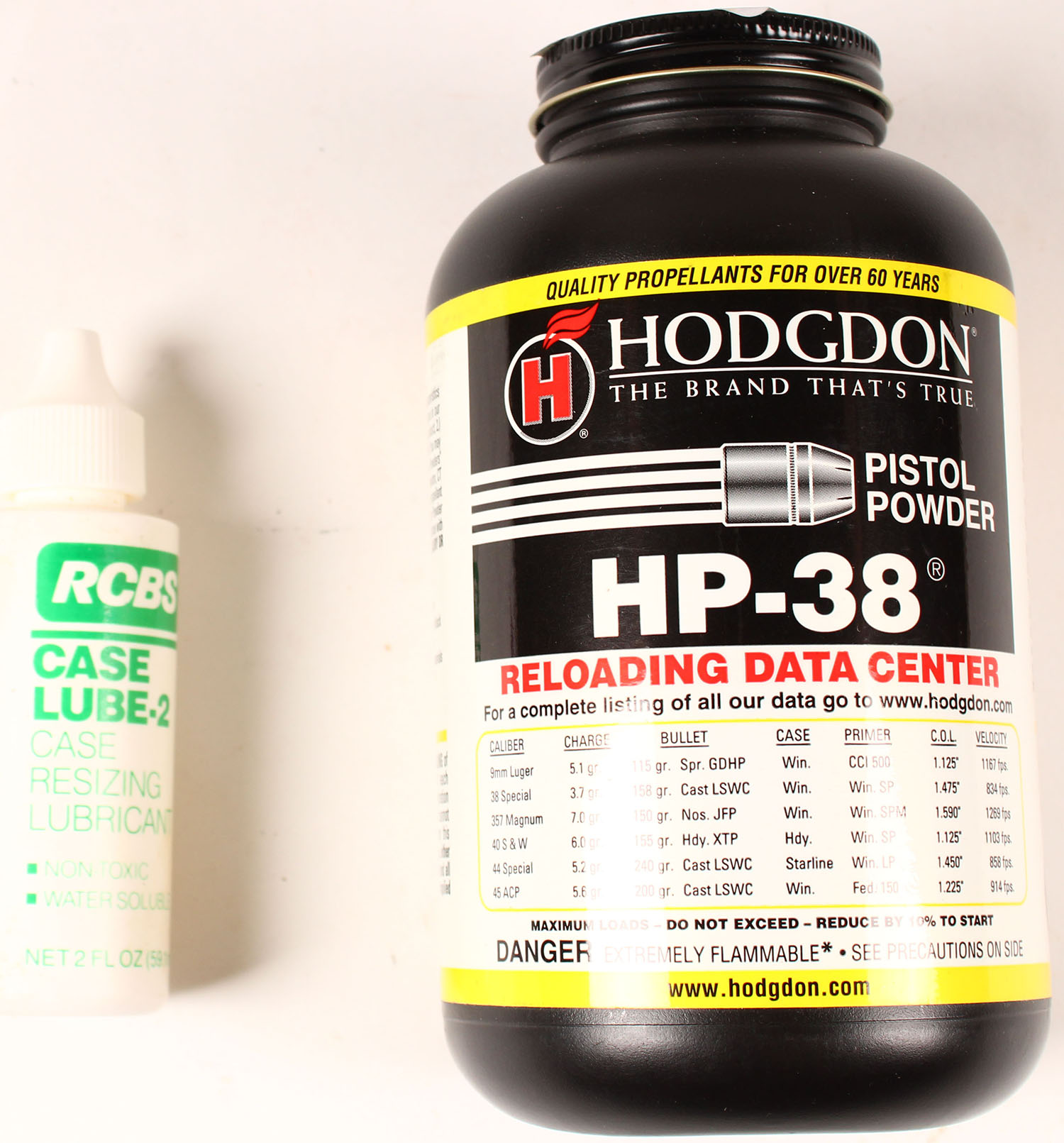 Lot of Bargains, This is a new full & sealed bottle of Hodgdon HP-38 pistol powder & a new bottle of RCBS case lube. - Value: 2 to 500
