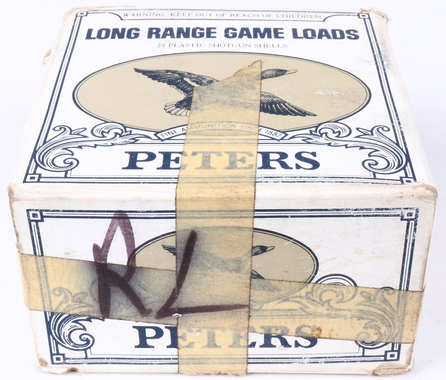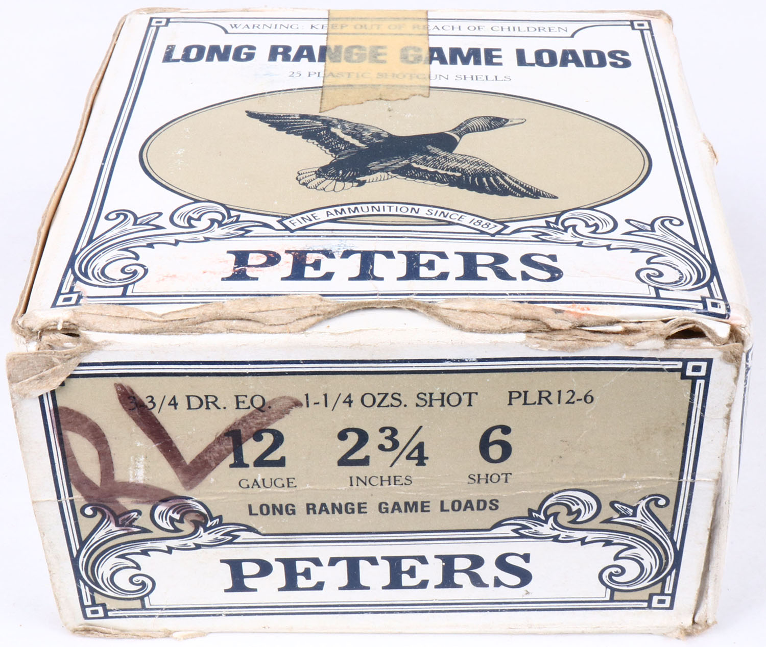 Peters, LONG RANGE GAME LOADS, 12ga., 1pc., Full, shot size 6, box has nice colors, shells are very good. Grade: Very Good + - Value: 6 to 20
