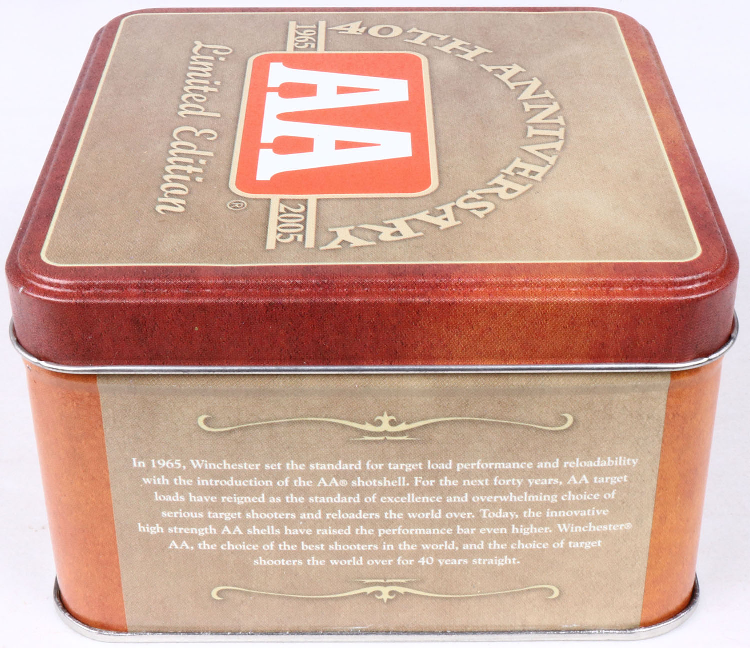 Winchester, AA 40TH ANNIVERSARY LIMITED EDITION 1965-2005, 12ga., 1pc., FULL, 25 count metal tin. Grade: MINT - Value: 16 to 40