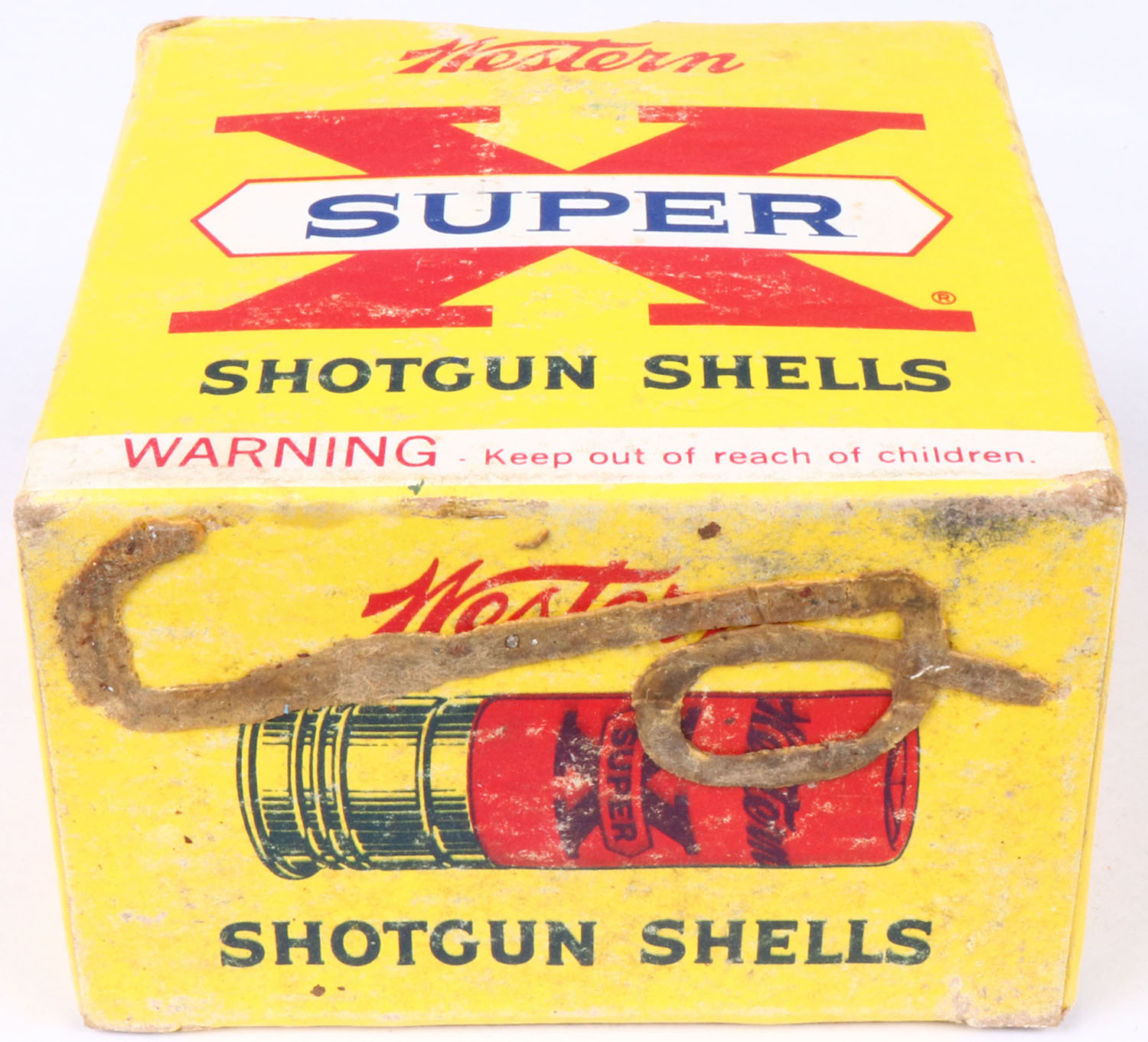 Western, Super X, 16ga., 2 3/4'', 1pc., Partial 20rds., shot size 4, multi-colored box, box is solid with age soiling & scuffing, box has very nice colors, shells are excellent. Grade: Very Good ++ - Value: 2 to 30
