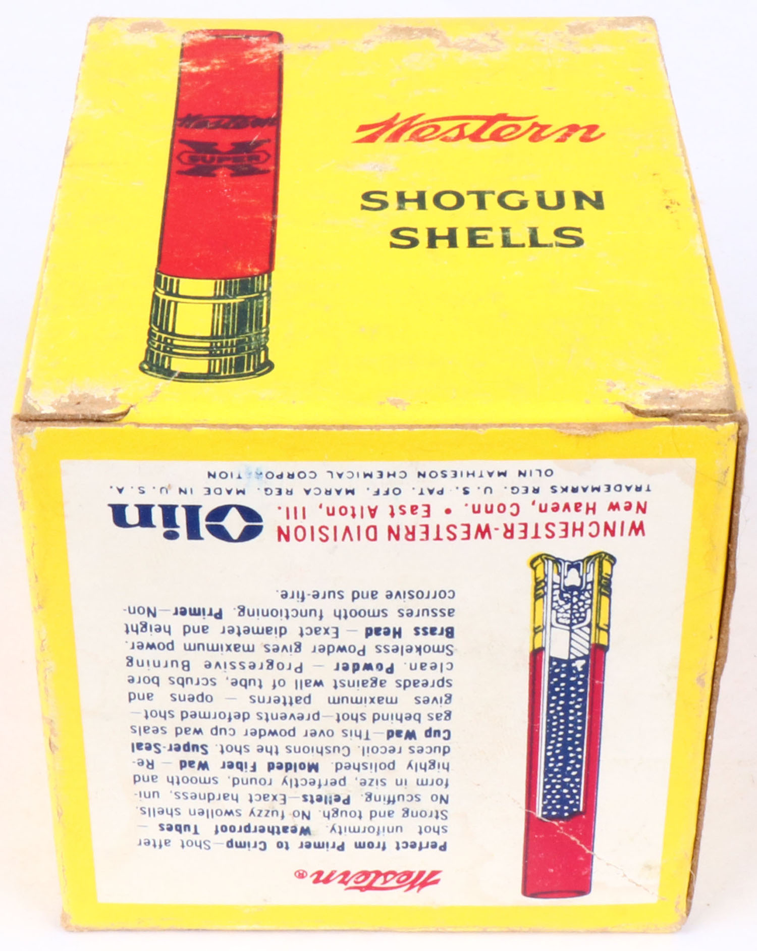 Western, Super X, 410ga., 3'', 7 1/2 Shot, 1pc., Full with 7rds being Winchester, multi-colored box, box has light scuffing & light edge wear, box is very solid with great color, shells are excellent. Grade: Excellent - Value: 20 to 60