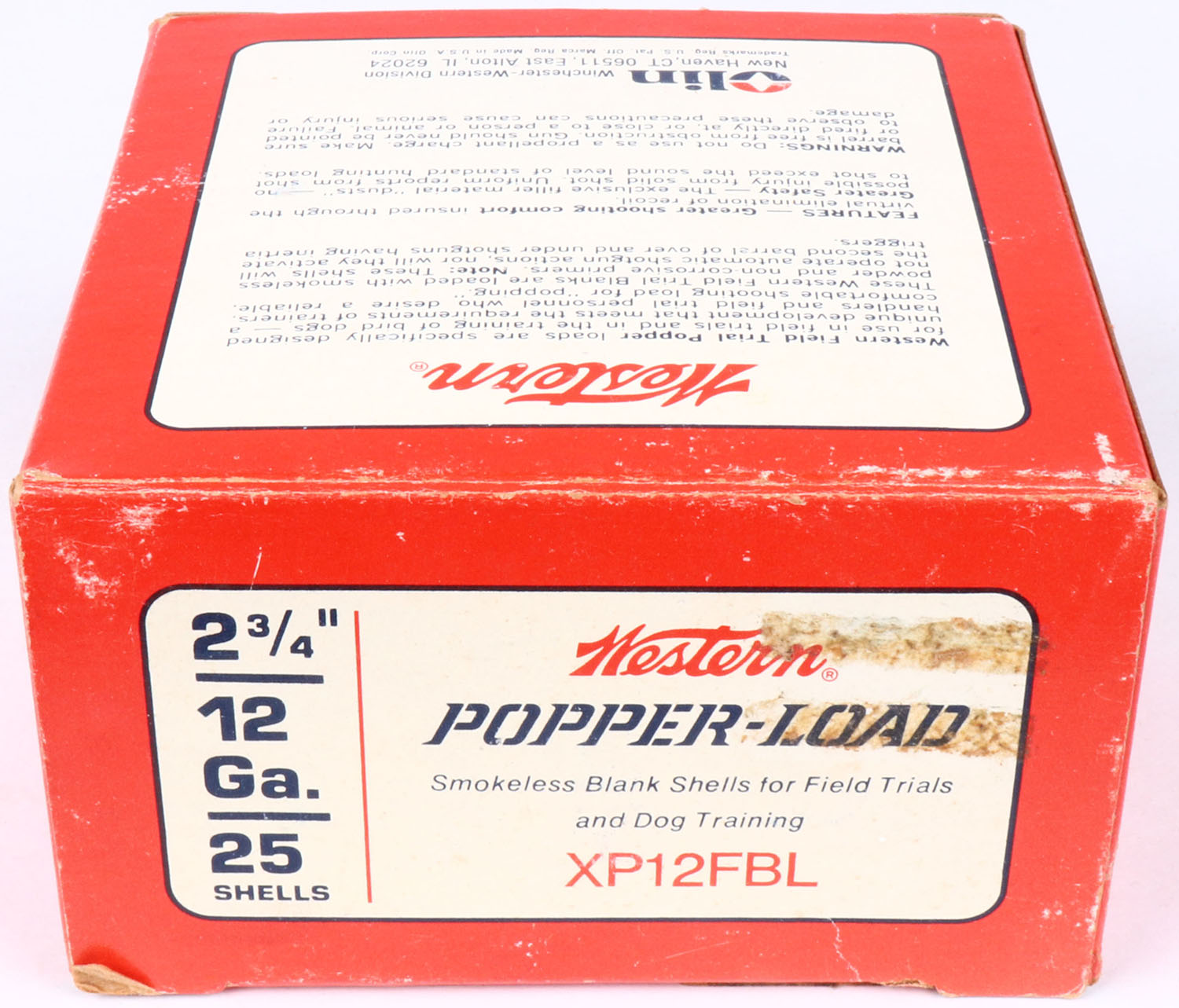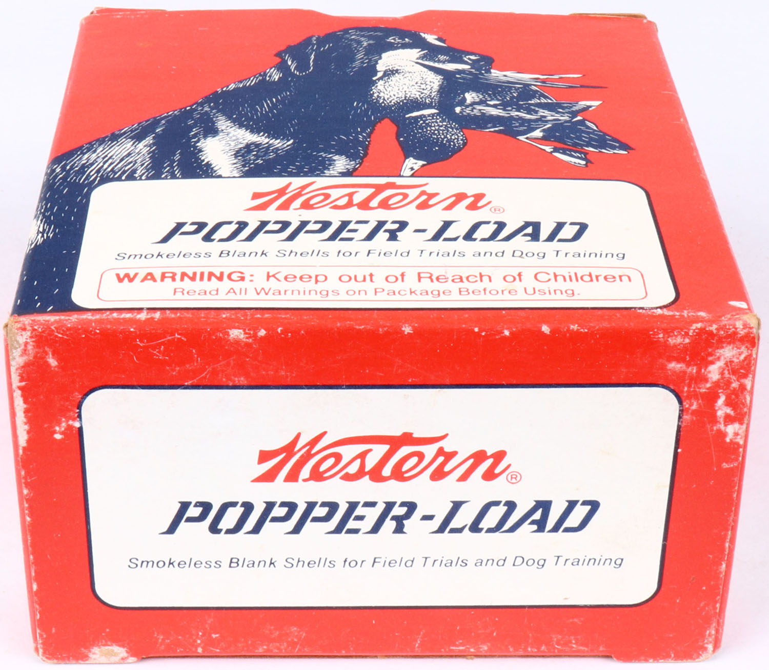 Western, POPPER-LOAD, 12ga., 1pc., Full, red, white & blue box, made for training dogs, great box. Grade: Excellent ++ - Value: 20 to 40