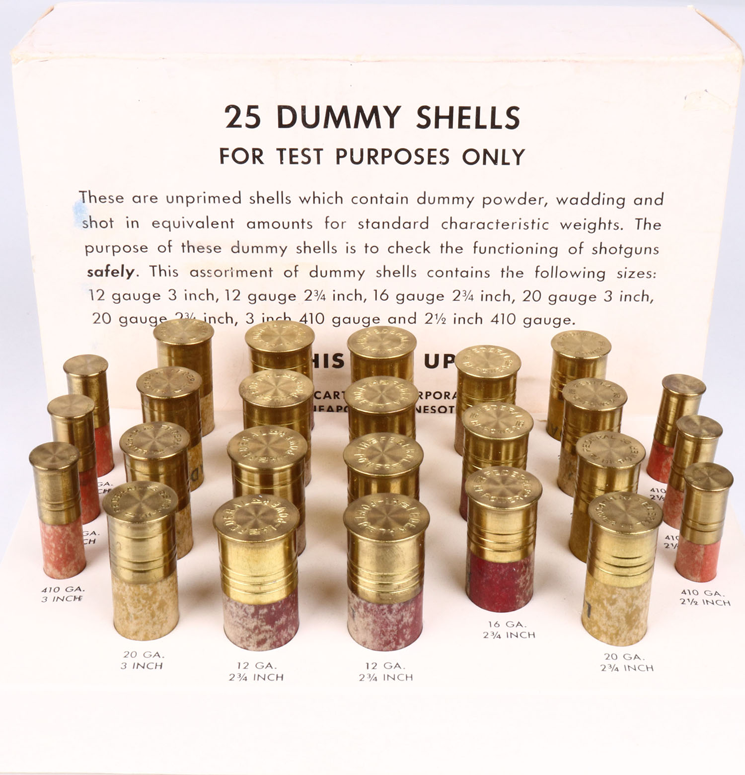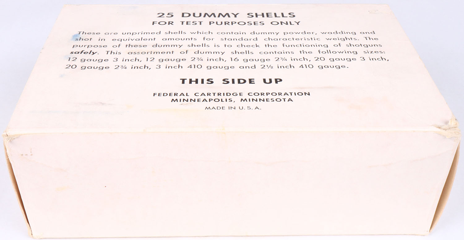Federal Cart. Co., DUMMY SHELLS for test purposes only, 1pc, Full, white box with black print, box is very solid with light soiling, shells are excellent. Grade: Excellent ++ - Value: 20 to 100
