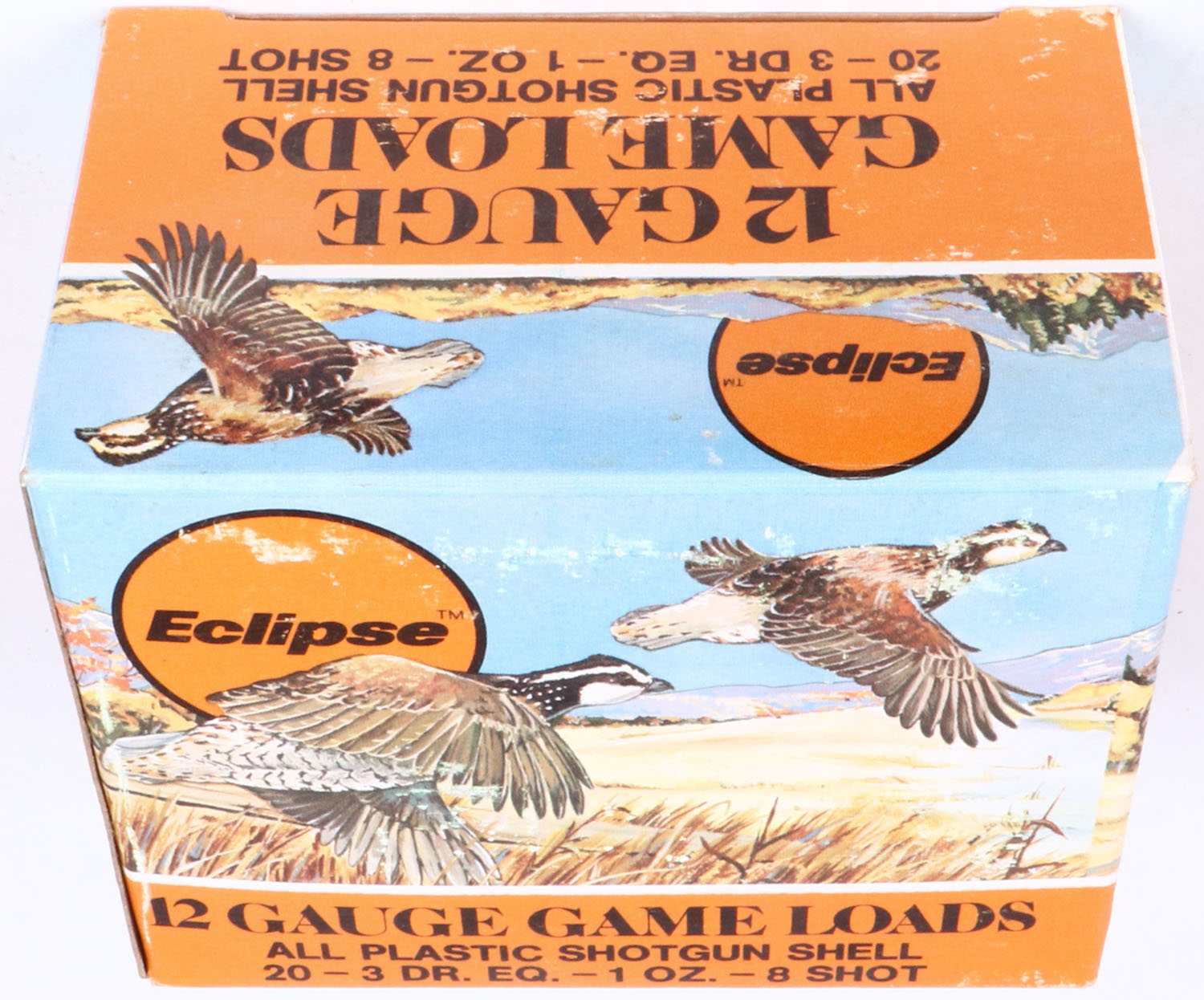 Eclipse, 12ga., 1pc., FULL, shot size 8, box is solid, Shells are excellent. Grade: Excellent + - Value: 8 to 20