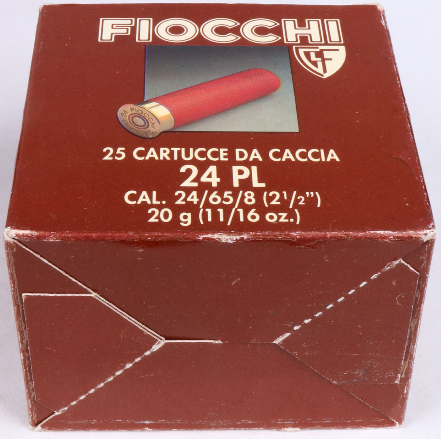 Fiocchi, 24PL., 1pc., Full, shot size 6, multi-colored box, box is very solid, Shells are excellent. Grade: Excellent + - Value: 8 to 20