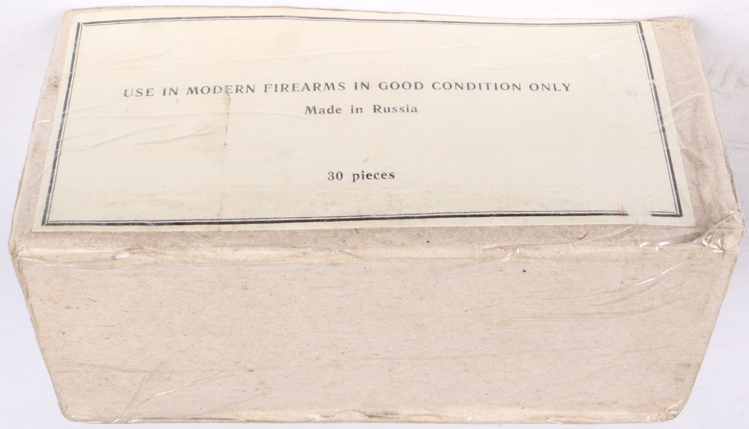 Russian, Iiatpoh Oxothnpnn, 12ga., 1pc., Partial 23rds, shot size 3, copper washed steel shells, Shells are very good. Grade: Excellent + - Value: 8 to 20