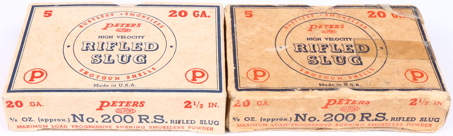 | Lot of 2 Peters, 20ga., 1pc., Full, 2 1/2'', shot size Rifled ...