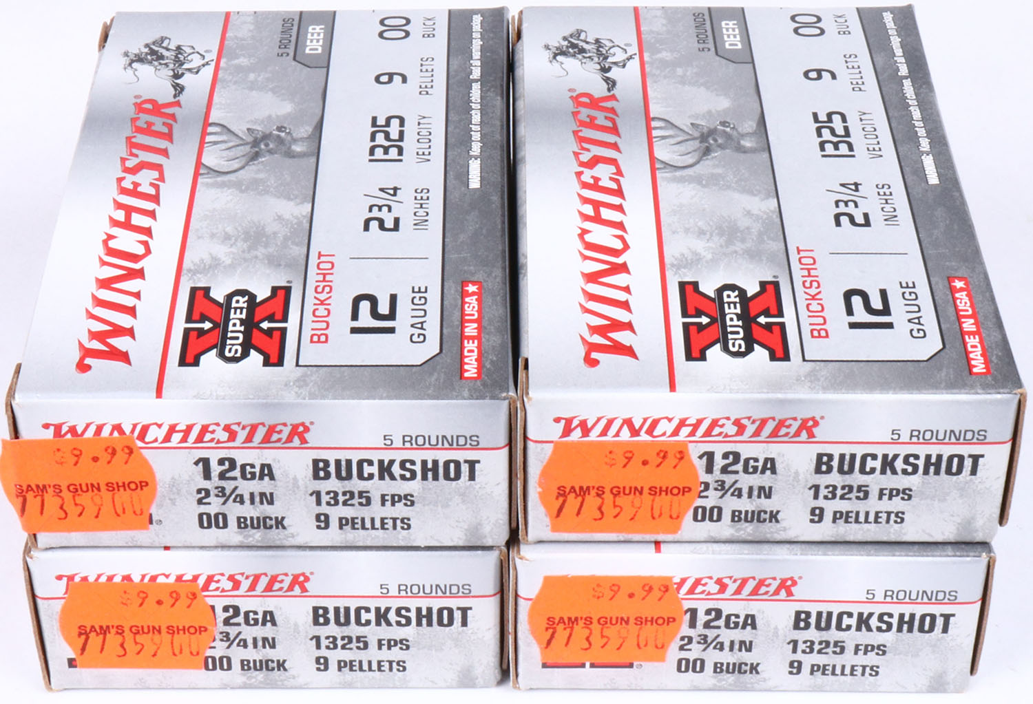 Lot of 4 Winchester, Super X, 12ga., 1pc., Full, 2 3/4'', shot size 00 Buck, multi-colored box, shells are very good. Grade: Excellent - Value: 8 to 20
