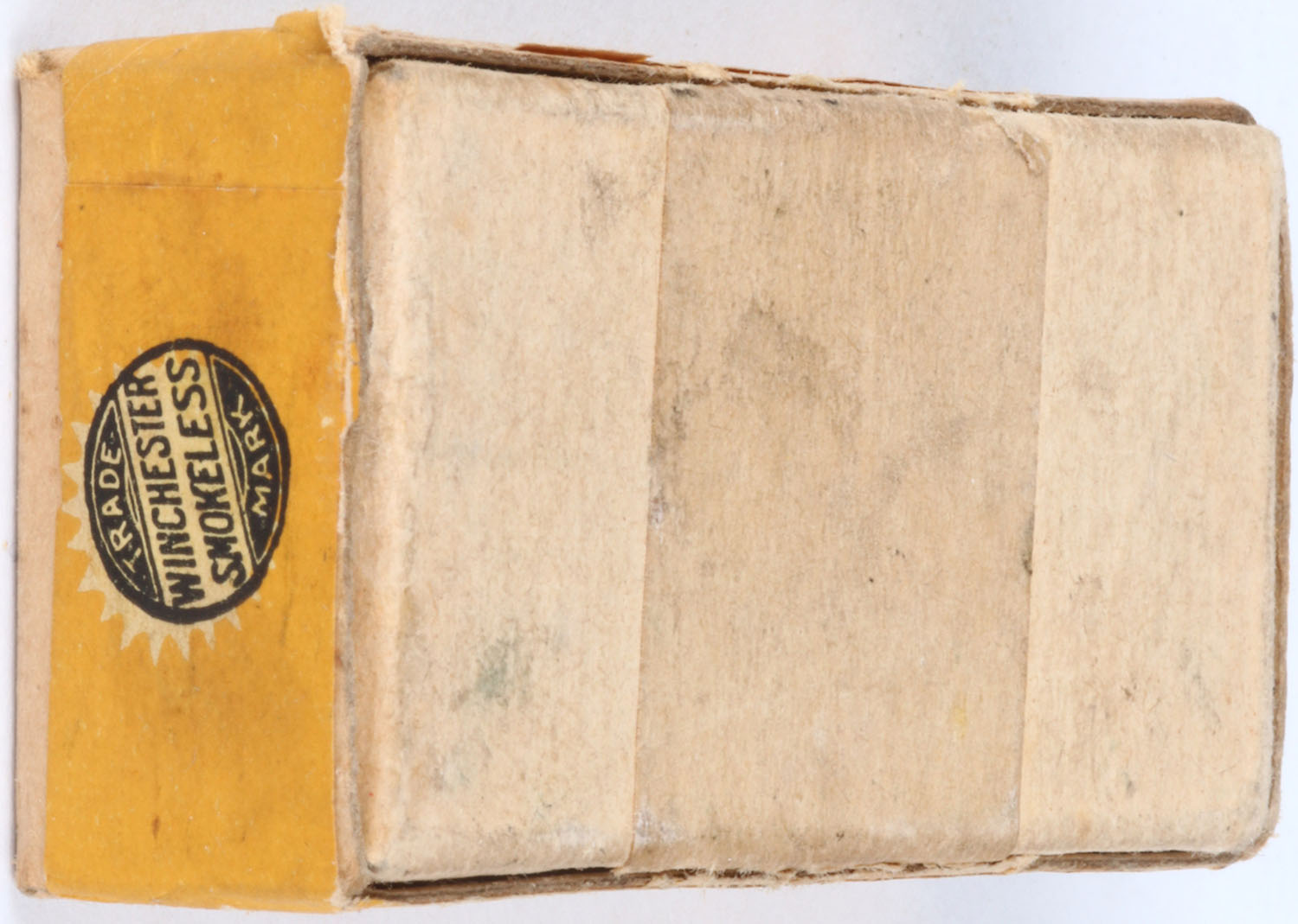 Winchester, Smokeless Rifle Cartridges, .22 Short, RR: WRA-57 S-25c, Partial 49rds., 2pc. Buff box with green top & orange side sealing labels, box is solid with excellent color, only very minor color fading & corner wear, edges are crisp, labels are intact, ammo is excellent. Grade: Excellent + - Value: 30 to 90