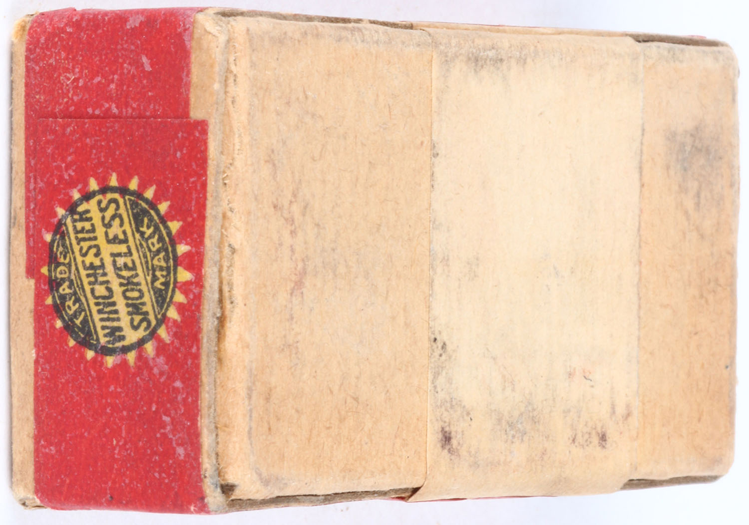 Winchester, Smokeless Cartridges, .22 Short Hollow Point, RR: WRA-73 S-48, FULL & SEALED, 2pc. Buff box with red top & side sealing labels, box is solid with excellent color, very minor age soiling some edge wear, very minor corner wear, labels are intact. Grade: Excellent + - Value: 300 to 900
