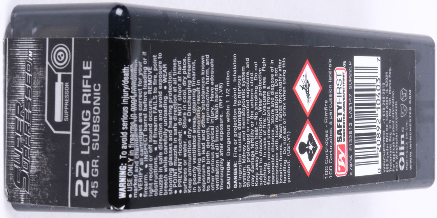 | Winchester, Super Suppressed, .22 Long Rifle, 45 Grain Subsonic,...