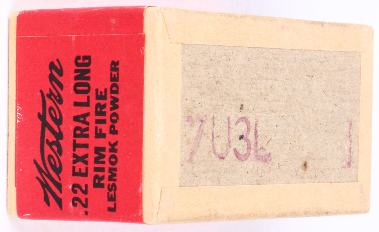 Western, Rim Fire Cartridges, .22 Extra Long, Lesmok Powder, RHWeb: WCC-3 XL-1a, FULL & SEALED, 2pc. Buff box with green top & red side sealing labels, box is solid with excellent to minty color, only very minor age soiling & shelf wear, corners are mostly sharp, edges are crisp, labels are intact. Grade: Excellent ++ - Value: 300 to 600