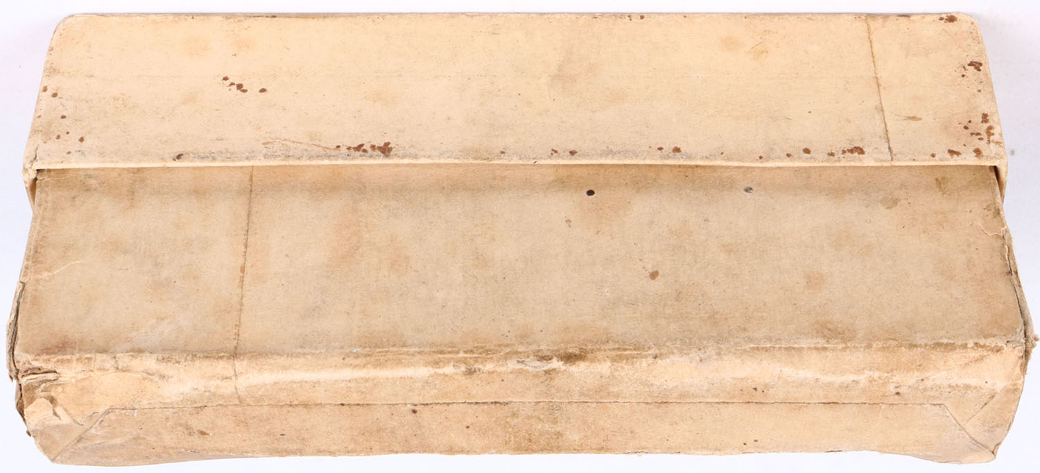 Winchester, .33 Winchester, Smokeless Powder, 200 Grain Soft Point Bullets, Partial 11 Rds., 2pc. Buff box with orange label & black print, box has multiple seam splits on lid & bottom box, inside tape seam repairs, stains, light age soiling, rub marks & edge wear, ammo ranges from very good to good. Grade: Good ++ - Value: 50 to 200