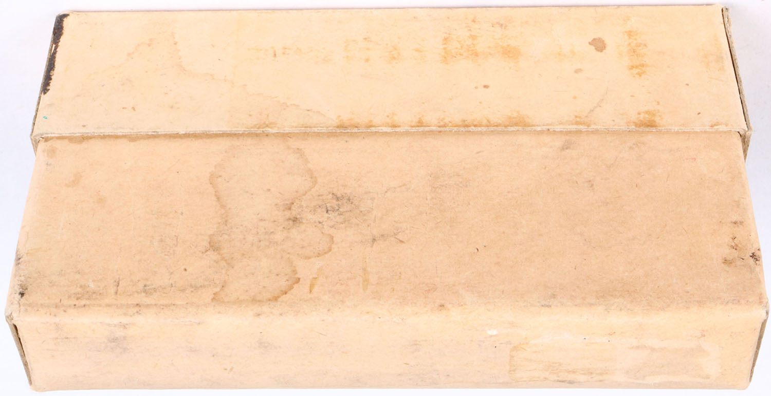 Winchester, 7mm, 175 Gr. Full patch bullet, 2pc, Full, buff box & label with black print, box has very good color, light stains on back, minor rub marks, & light edge wear, ammo is good. Grade: Excellent - Value: 20 to 40