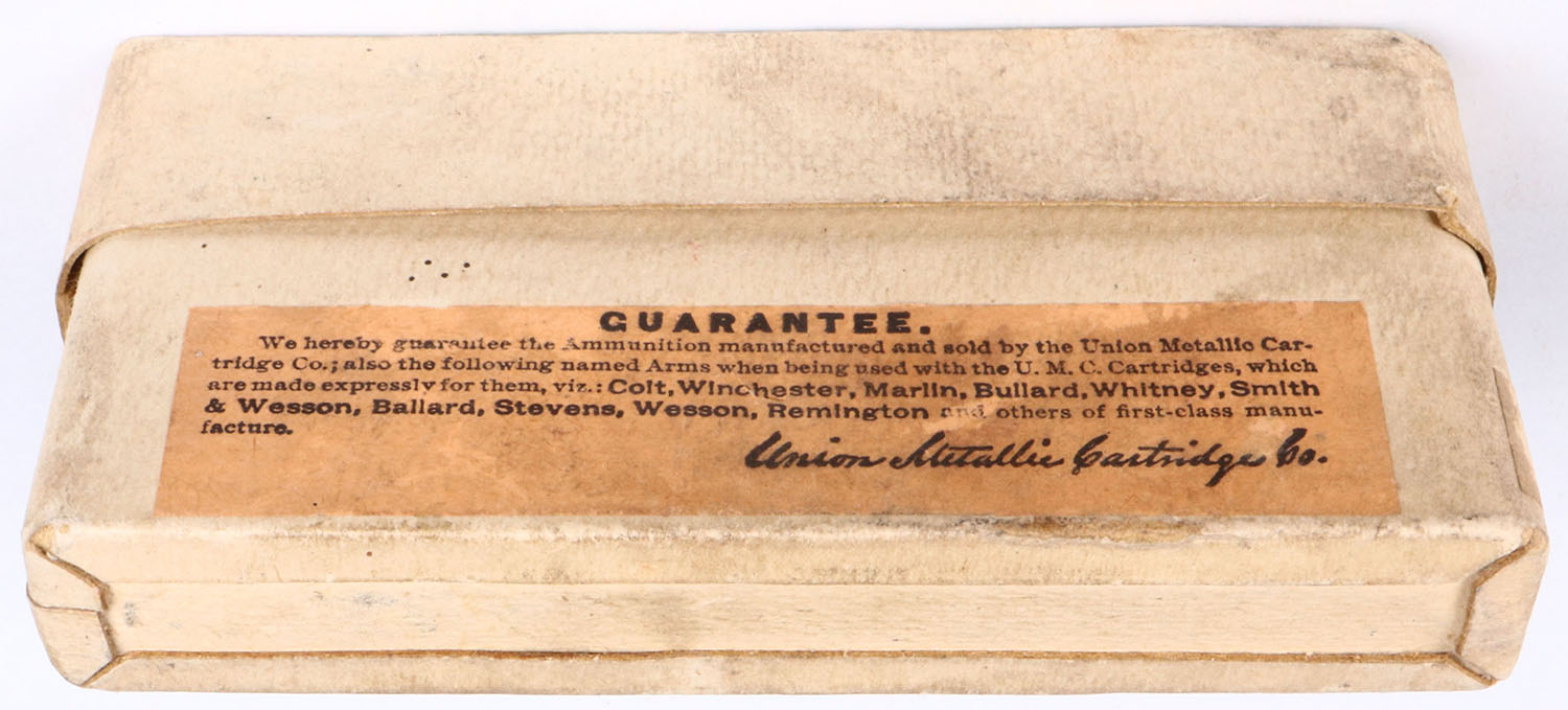 UMC, .40-60 Marlin, 260 Gr. Bullet, 2pc, Full, buff box with green label & black print, box is solid with light age spotting, light rub marks, & light edge wear. Grade: Excellent - Value: 50 to 100