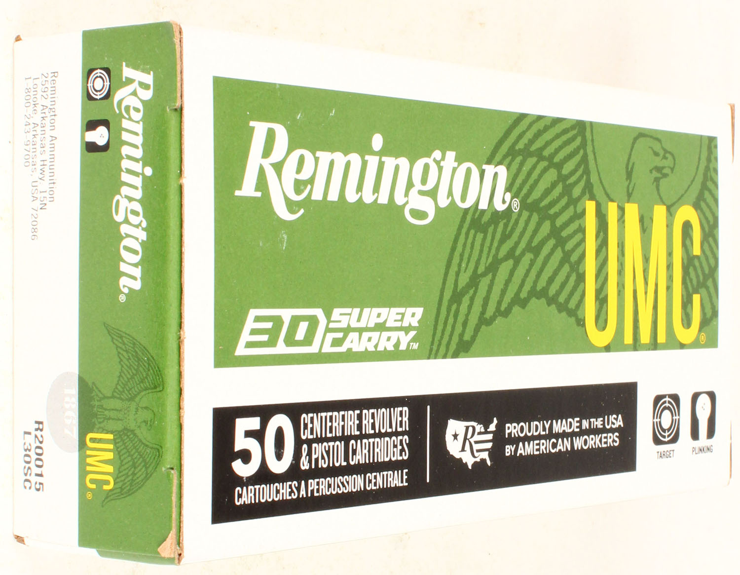 Remington, 30 Super Carry, UMC, 100 Gr. FMJ, 1pc, Full, multi-colored box, box is solid, ammo is excellent. Grade: Excellent - Value: 20 to 60