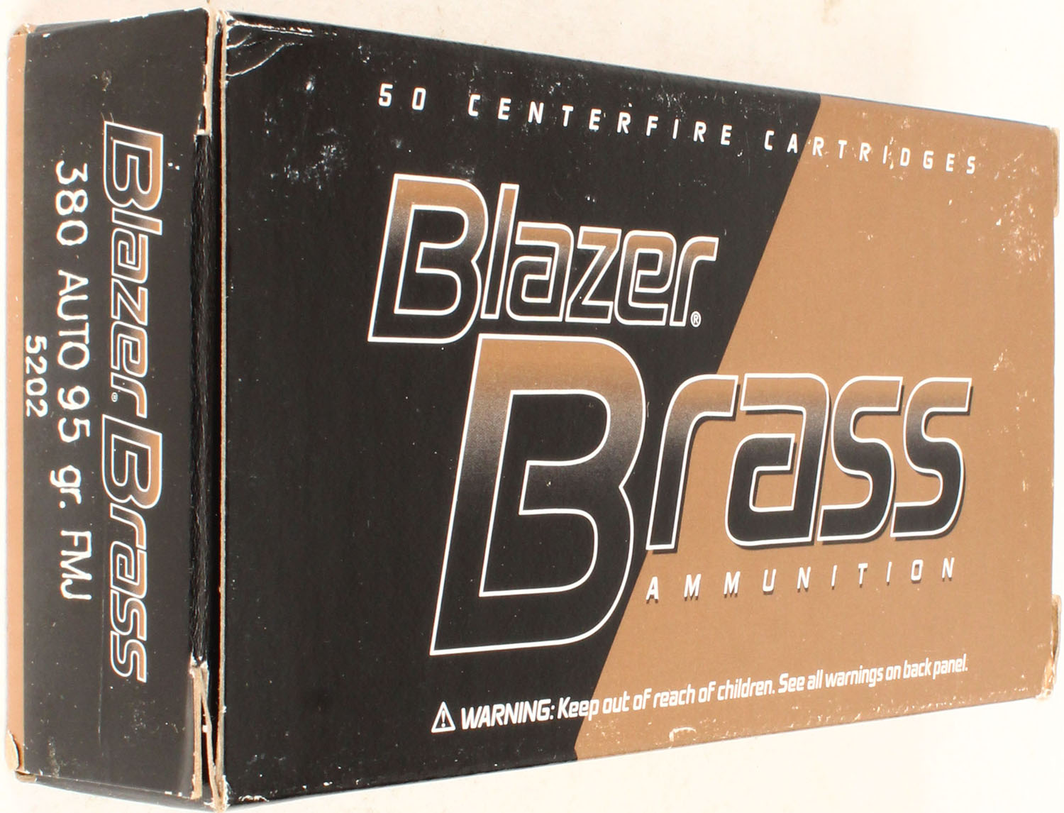 CCI, Blazer Brass, 380 Auto, 95 Grain FMJ, Full, 1pc. multi-colored box, box is solid with excellent color, Ammo is excellent. Grade: Excellent - Value: 20 to 60