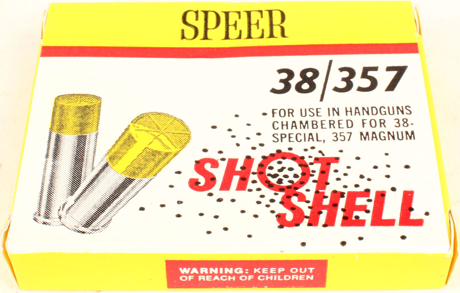 Speer, 38/357 Shotshell, Full, 1pc. multi-colored box, box is solid with excellent color, Ammo is excellent. Grade: Excellent - Value: 10 to 40