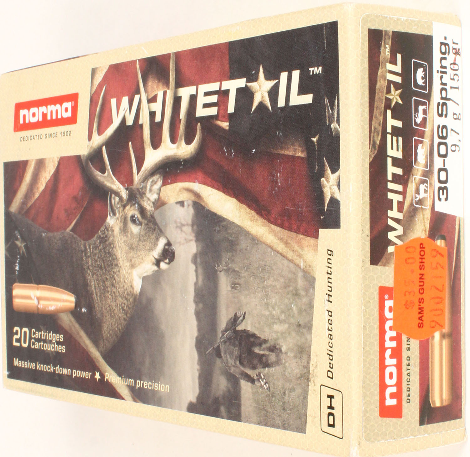 Norma Whitetail, 30-06 Spring., Full, 1pc. multi-colored box, Ammo is excellent. Grade: Excellent ++ - Value: 10 to 50